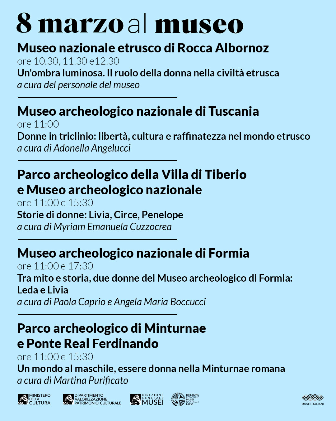 Domenica 8 marzo 2026, in occasione della Giornata internazionale della donna, l’ingresso ai musei, parchi archeologici e luoghi della cultura statali sarà gratuito per tutte le donne.